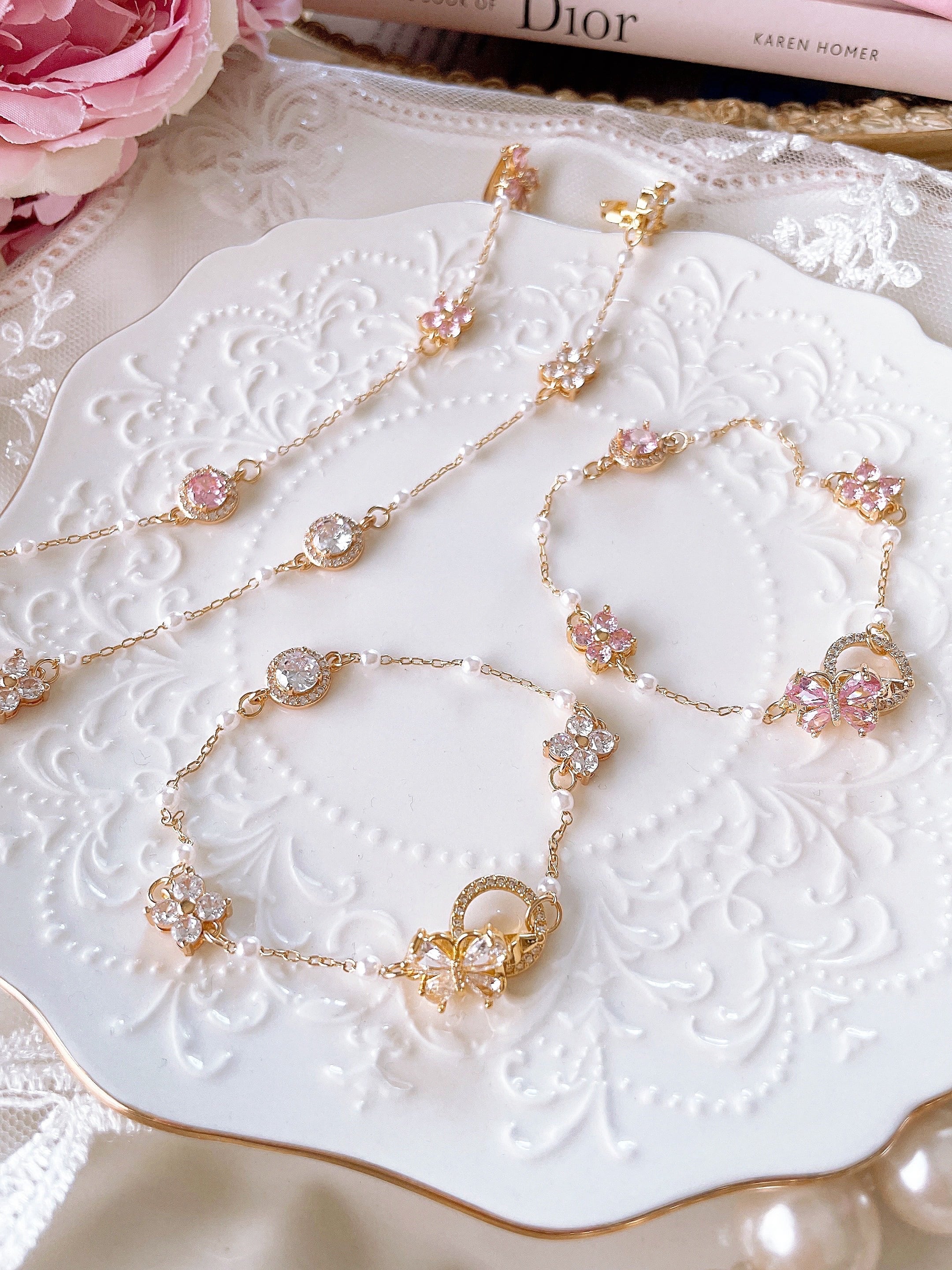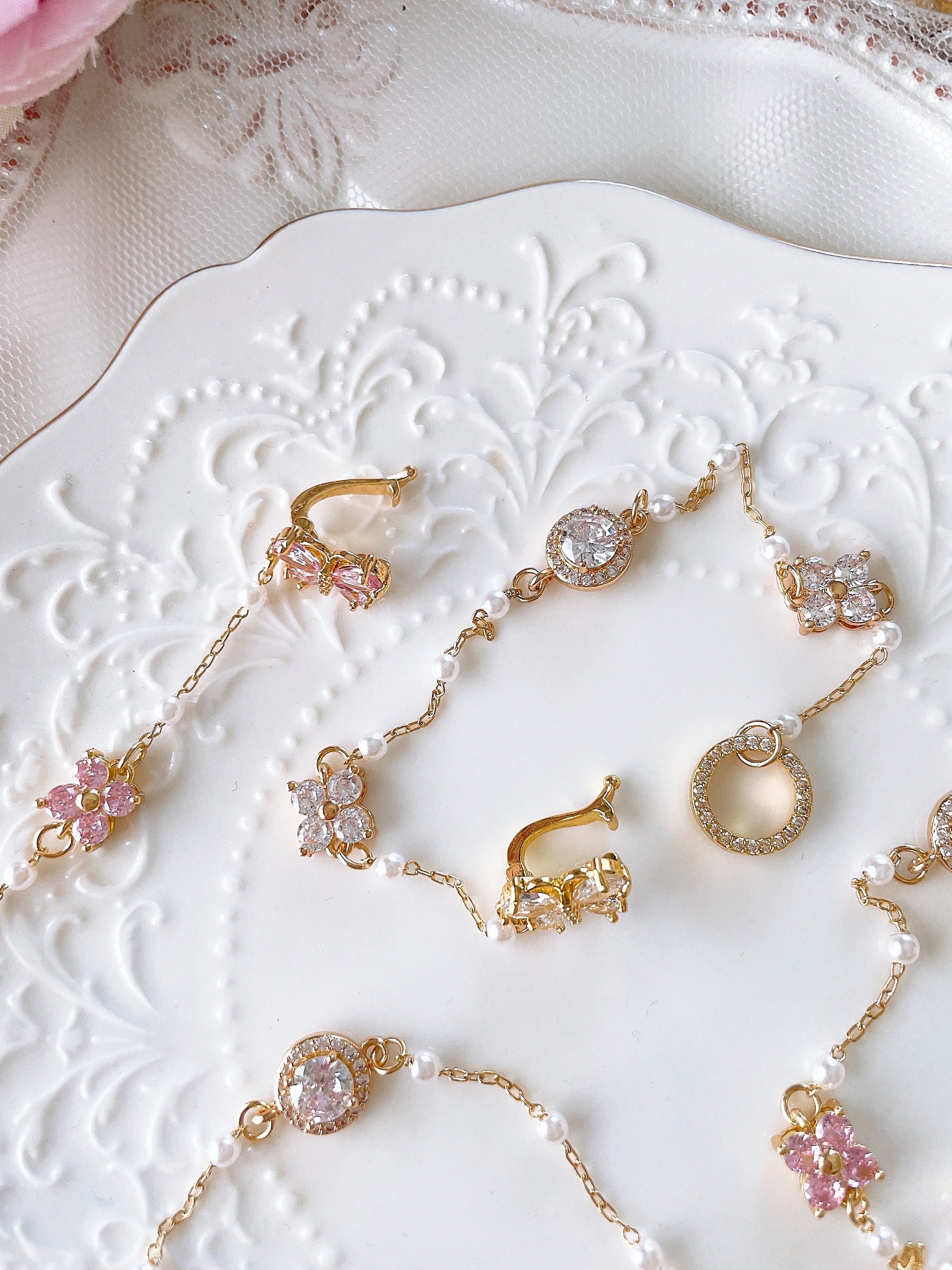華奢なチェーンに、高級感のあるジルコニアパーツをあしらったブレスレット。