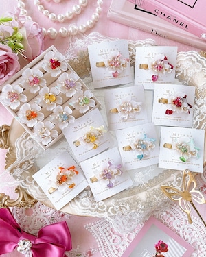 手元を華やかに演出してくれるキラキラなデザインは推し活にも使えるカラバリで、お揃いでつけられるヘアクリップも別ページにてご用意しました。
