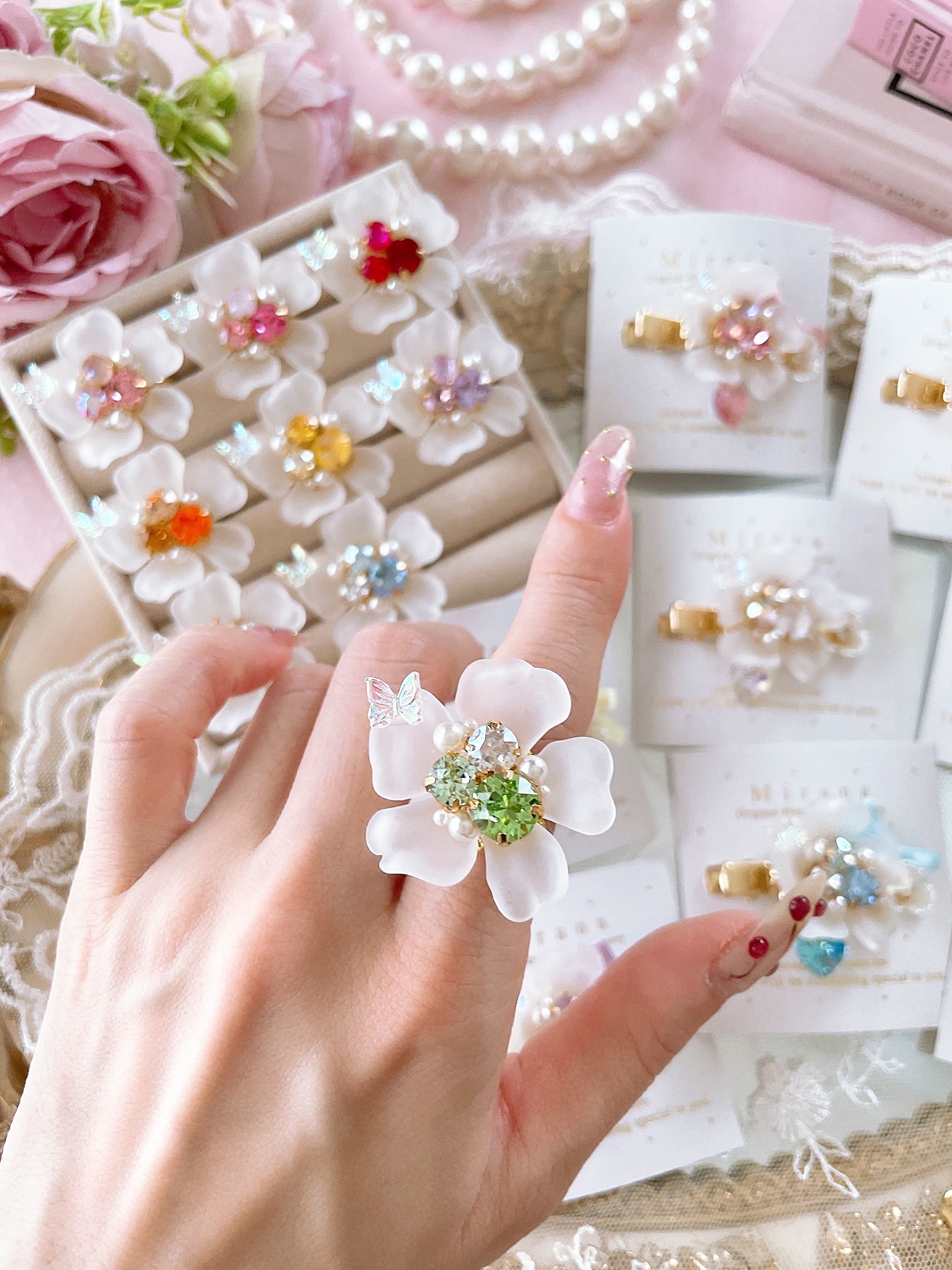 Frosted flower "oshicolor" ring