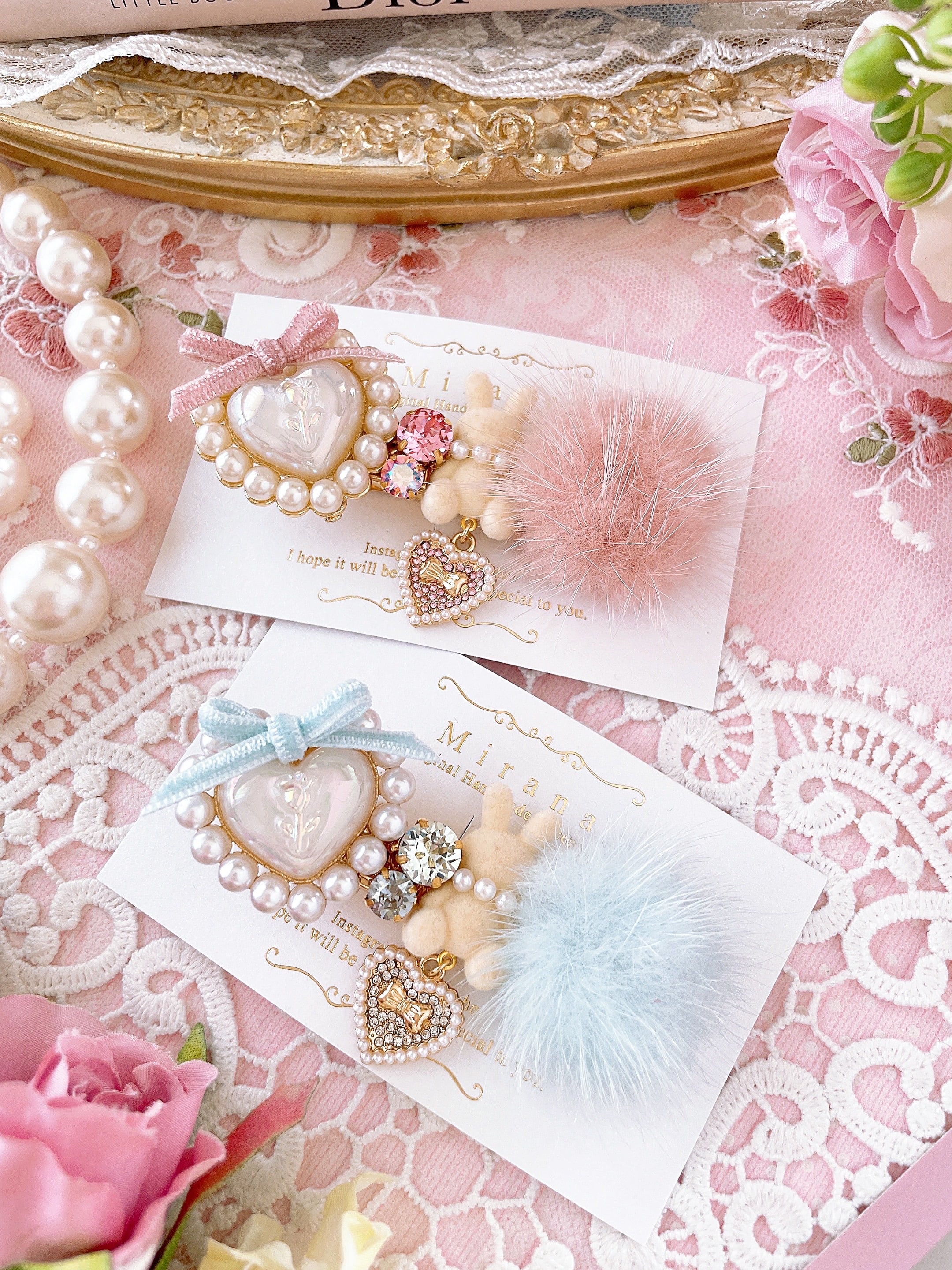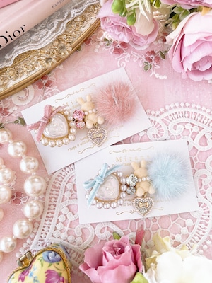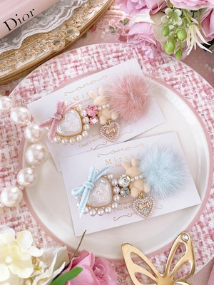 可愛らしいうさぎとファーを組み合わせた、ガーリーなヘアクリップ。