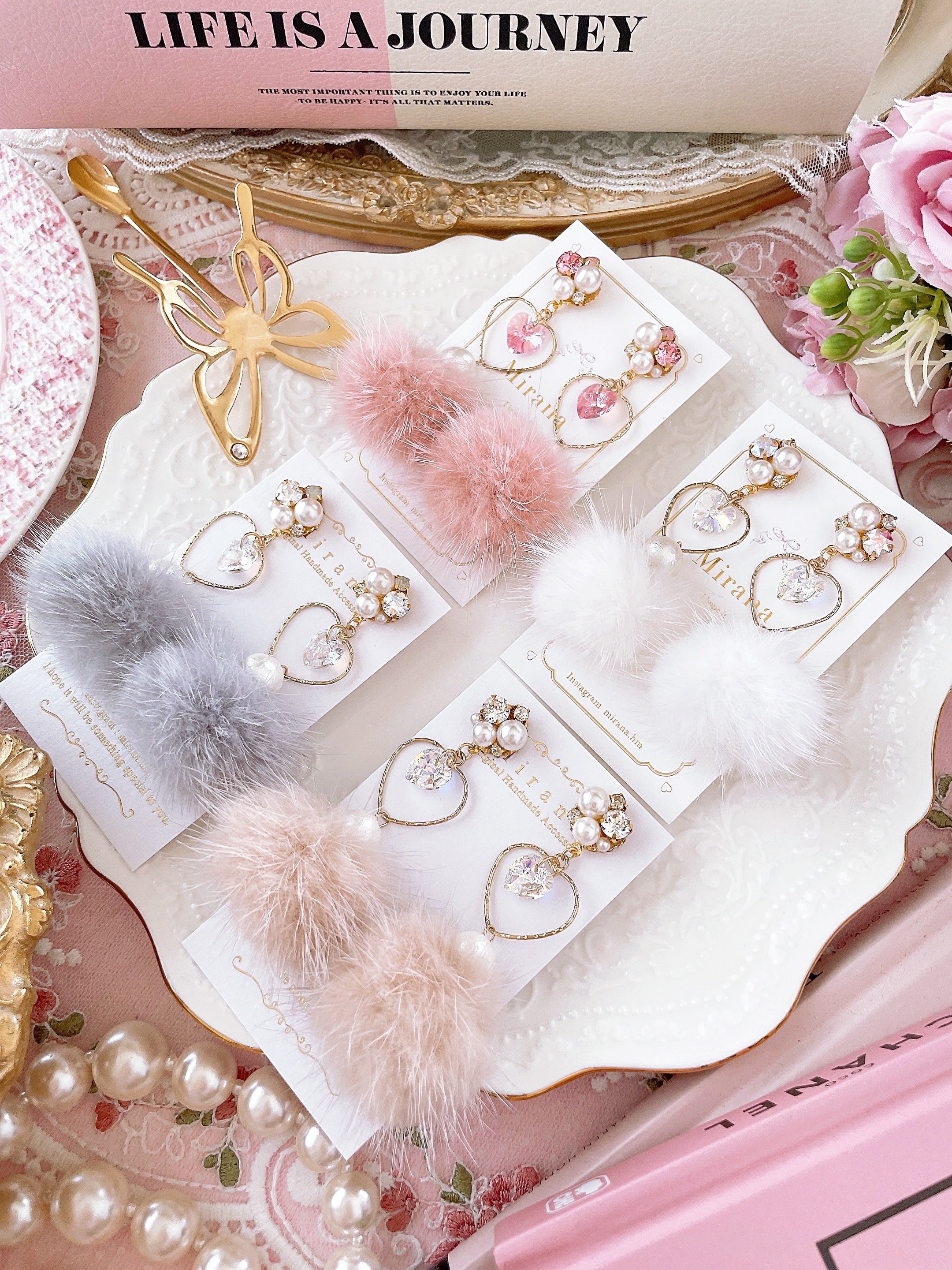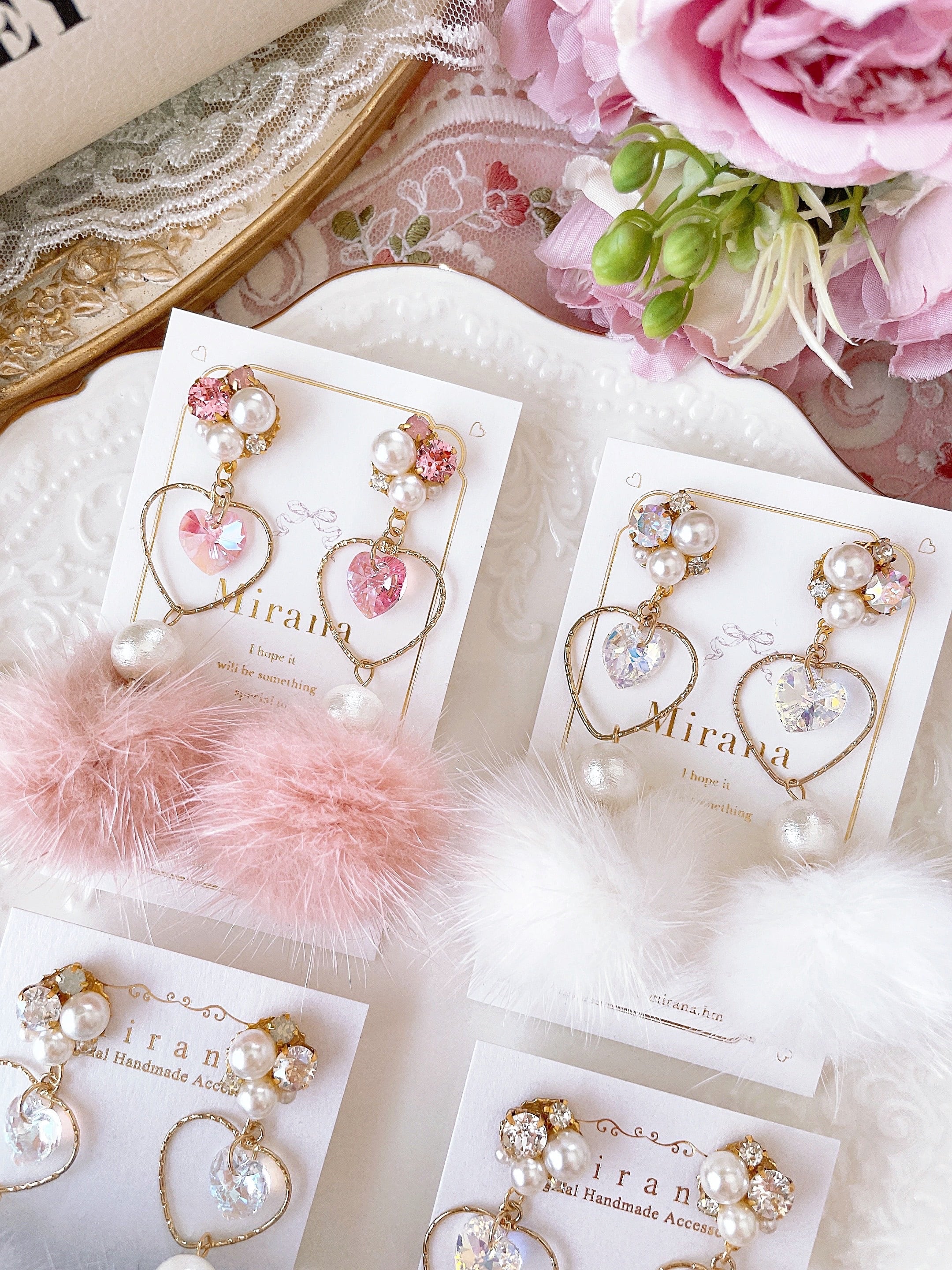 エレガントなファーとハート、ビジューを組み合わせたロングデザインです。