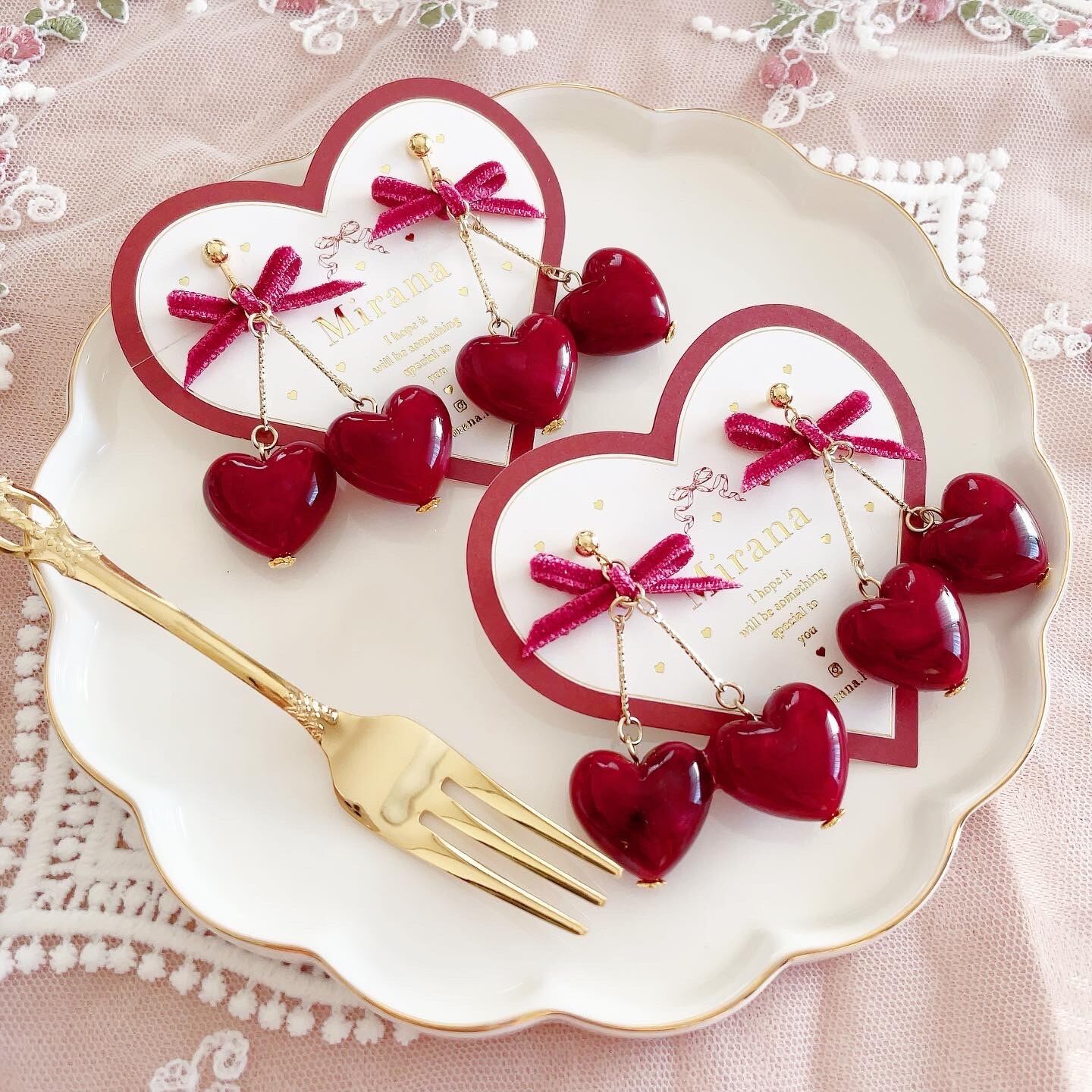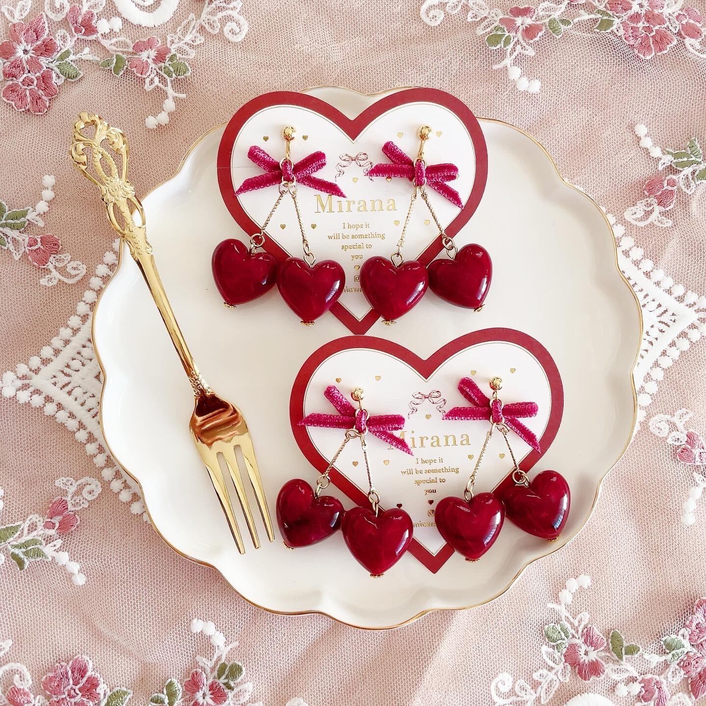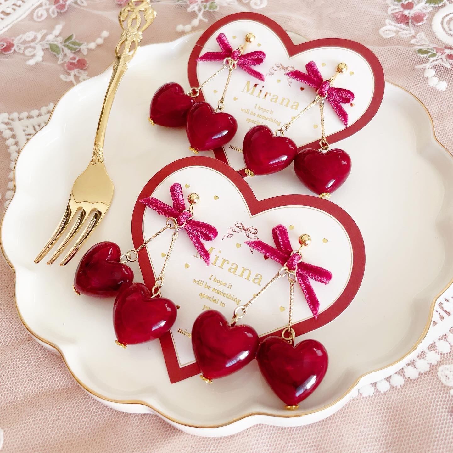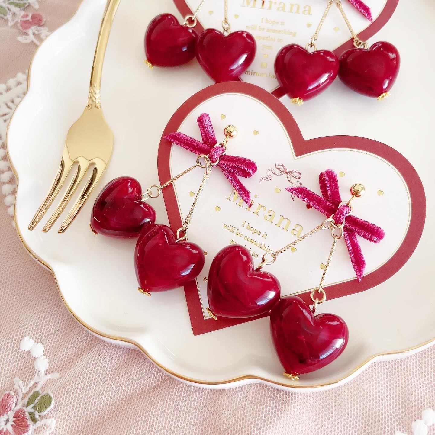 着用した時にハートがチェリーのように横並びになるよう